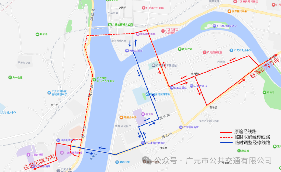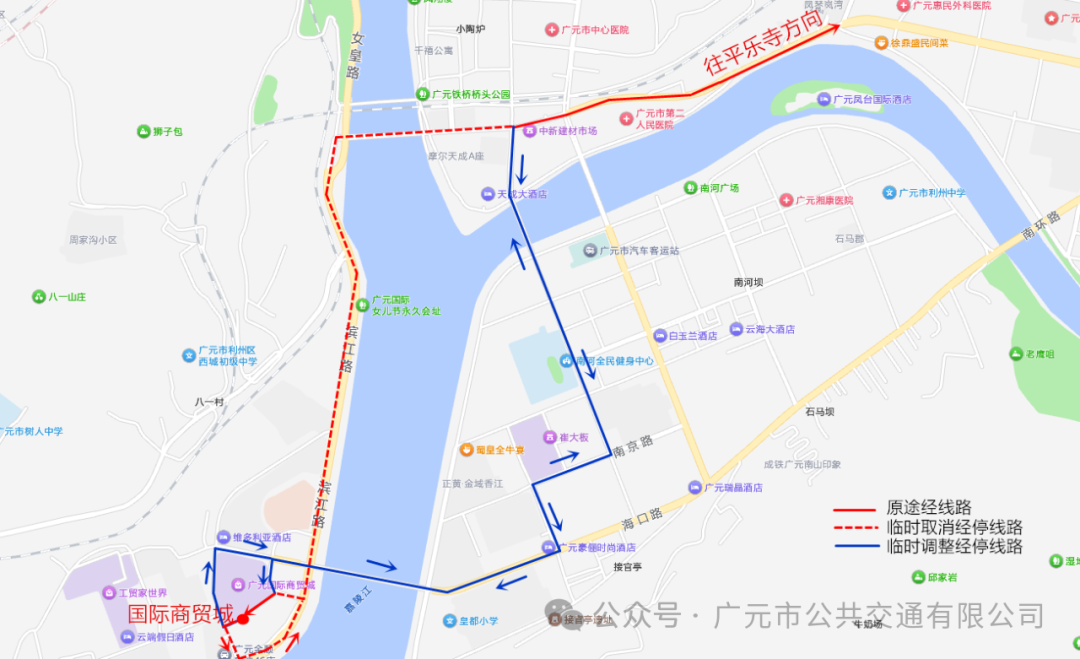 調整后經(jīng)停站點:途經(jīng)供排水公司、南河汽車站(西)、南河體育場、玉樹家園、皇都首座至國際商貿(mào)城: